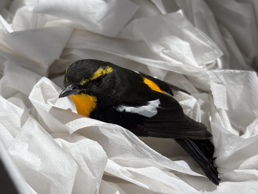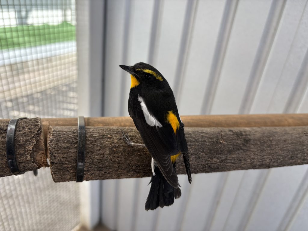 先日、幼稚園のテラスにてキビタキのオスがダウンしており保護することにしました!