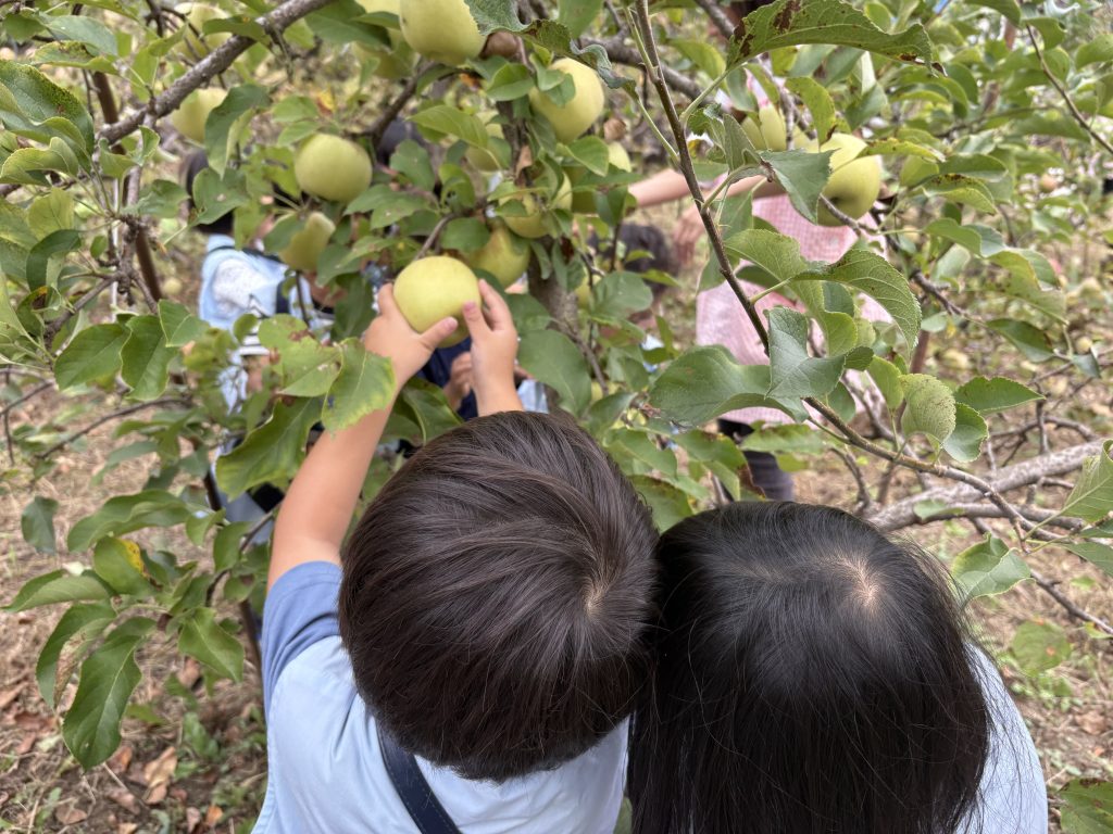 りんご狩りに取り組む中で子ども達は情報の共有ができます。