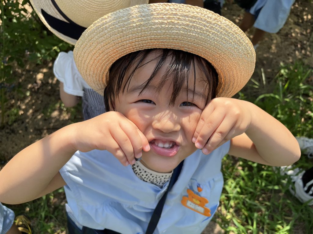 ゆっくり流れる時間の中で「あっちに大きいのあったよ」「ここに沢山なってるよ」「こうすれば簡単にとれそうだよ」など工夫や創造が垣間見えます。