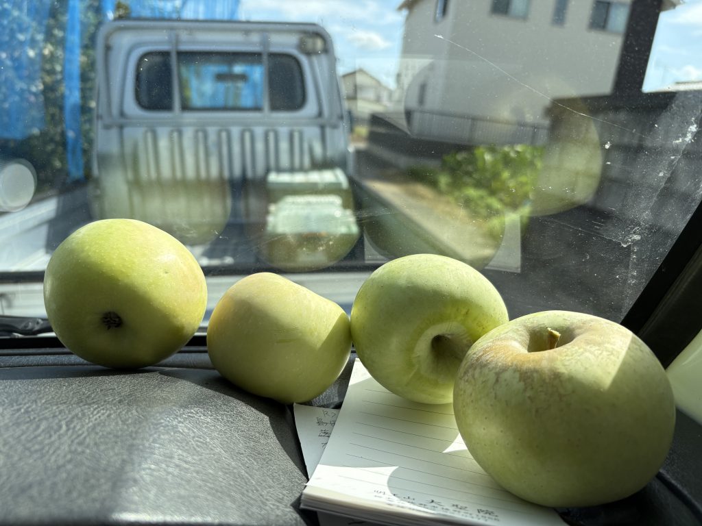 軽トラのダッシュボードに転がるりんご見ながらふと思ったんです。絞ろうと。