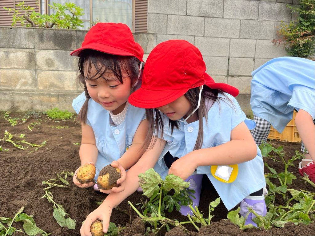 みんなで成長を見守ってきた苗木はすっかり大きくなり、土の中には大好きなじゃがいもが沢山できています!